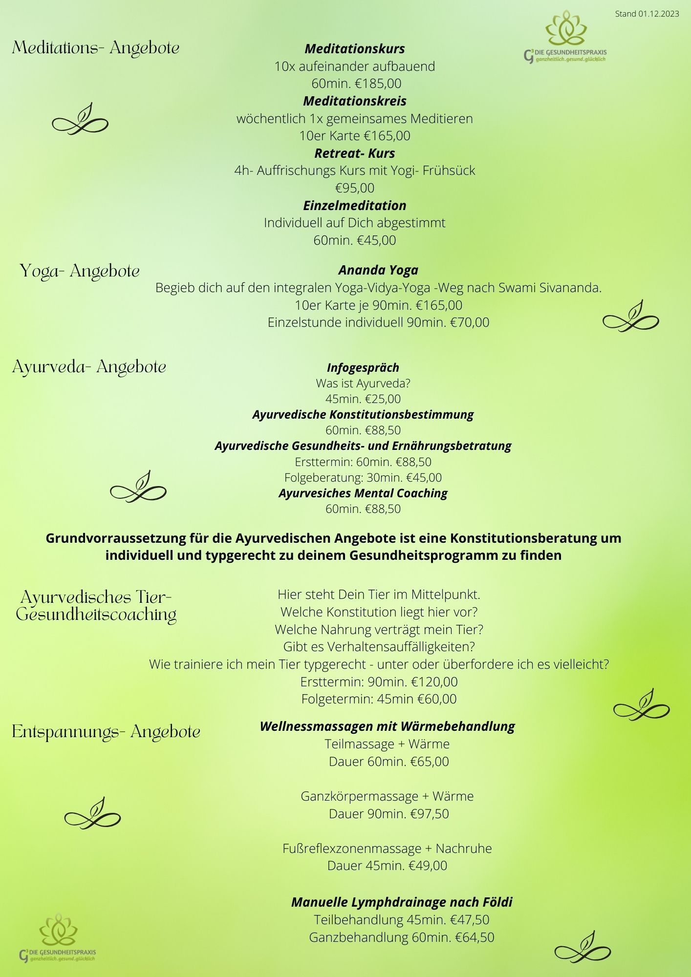 Aktuelle Angebote Übersicht der G³ Die Gesundheitspraxis